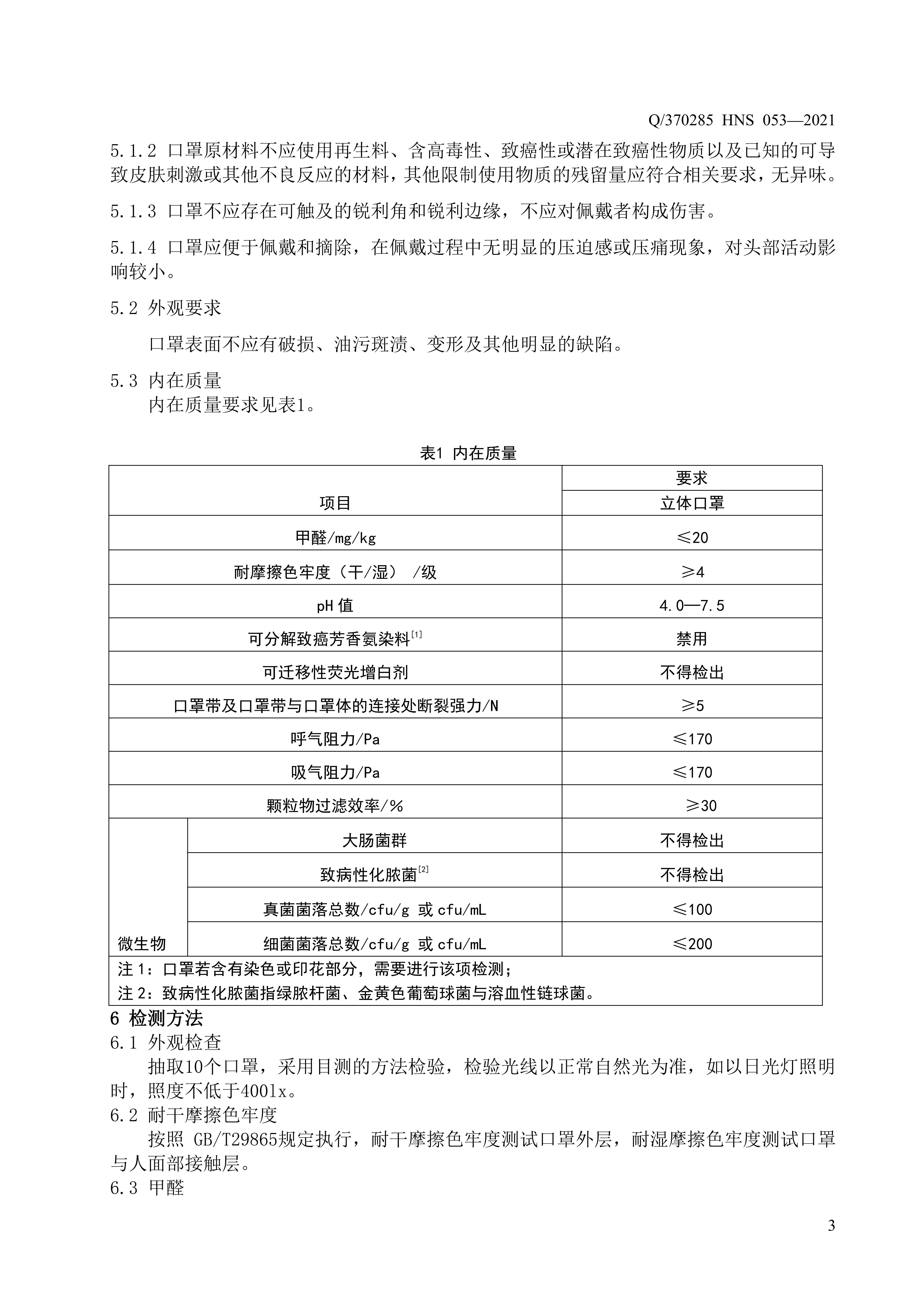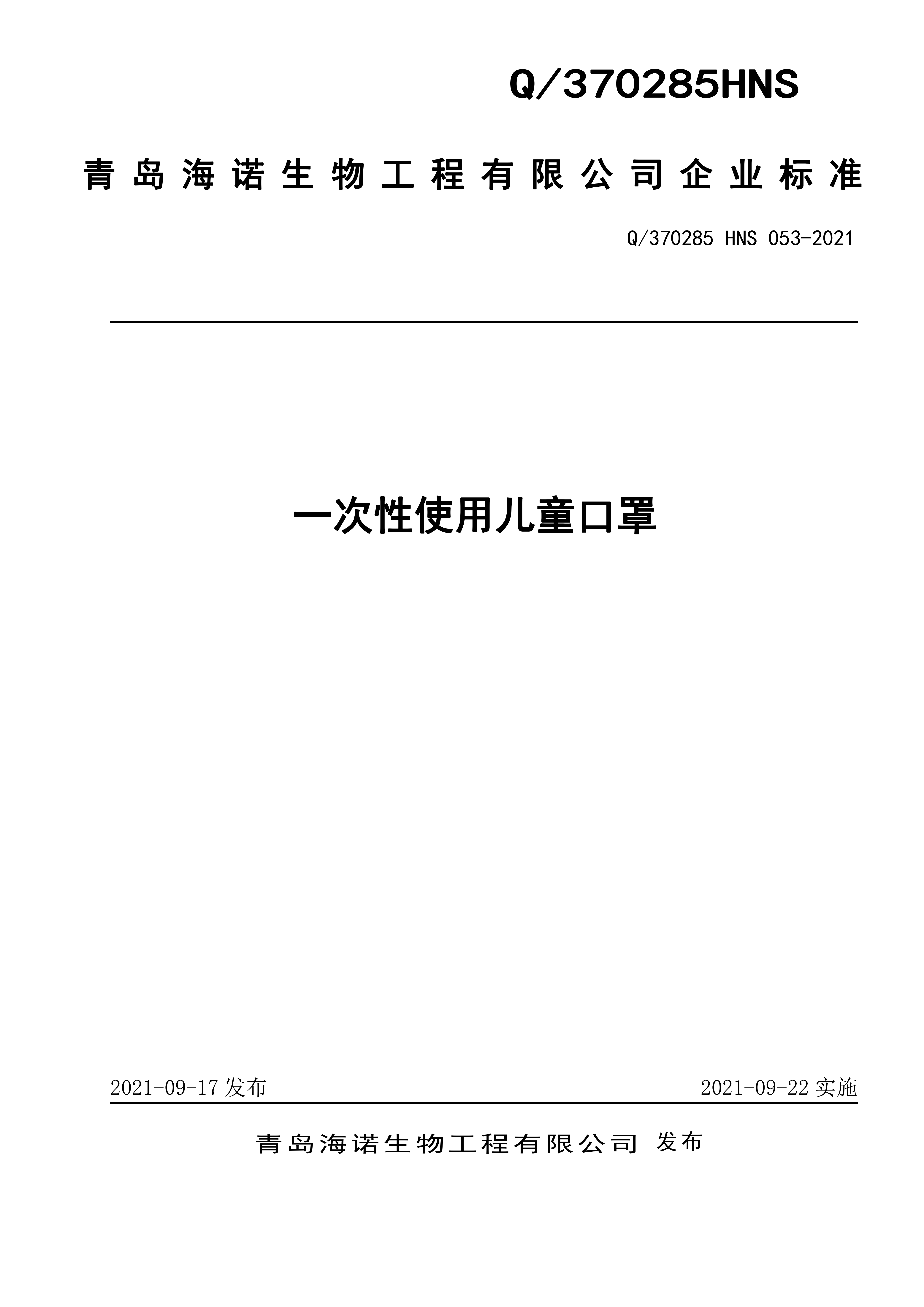 青島海諾生物工程有限公司企業標準 — 一次性使用兒童口罩